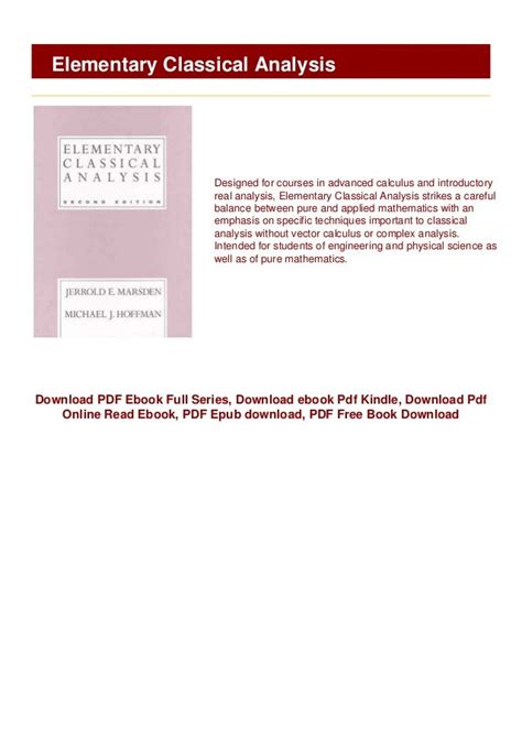 Read Online ELEMENTARY CLASSICAL ANALYSIS Paperback BookBoon
